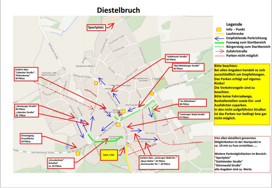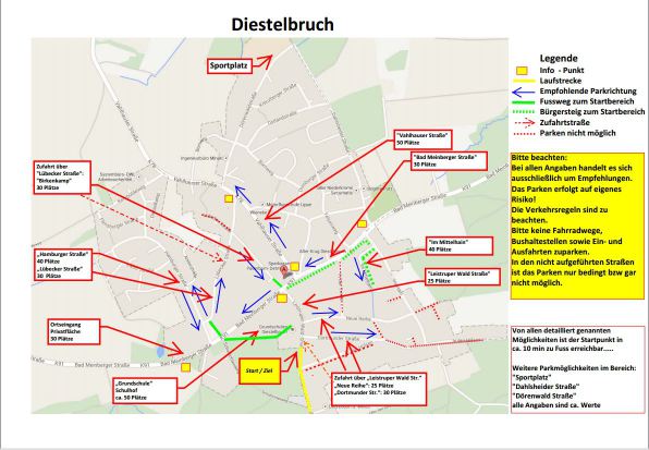 Wer mit dem Auto anreist wird von Helfern des Vereins zu den Parkmöglichkeiten geleitet. Bitte beachten Sie die StVO und halten die Einfahrten der Anlieger frei.
